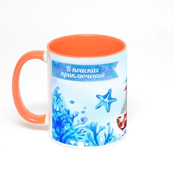 Керамическая кружка окрашенная оранжевым внутри с оранжевой ручкой с нанесением изображения. Кружка с вашим изображением – это уникальный и качественный подарок. Создать её вы можете прямо сейчас в редакторе, добавляя фотографии, стикеры и надписи.