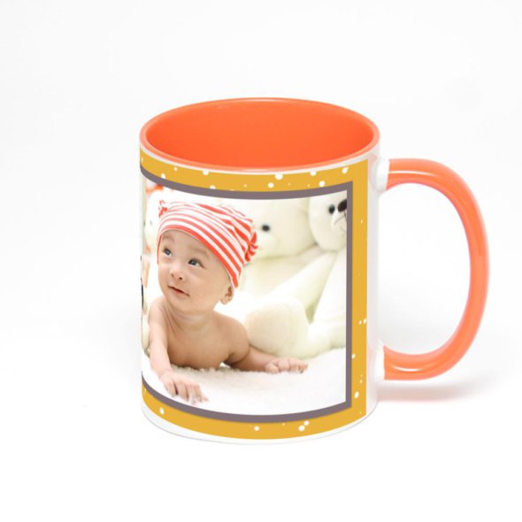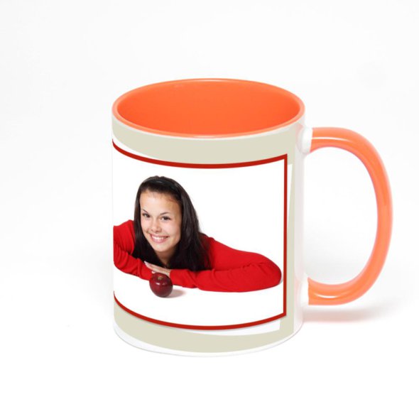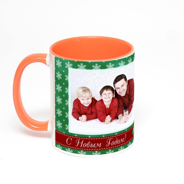 Керамическая кружка окрашенная оранжевым внутри с оранжевой ручкой с нанесением изображения. Кружка с вашим изображением – это уникальный и качественный подарок. Создать её вы можете прямо сейчас в редакторе, добавляя фотографии, стикеры и надписи.