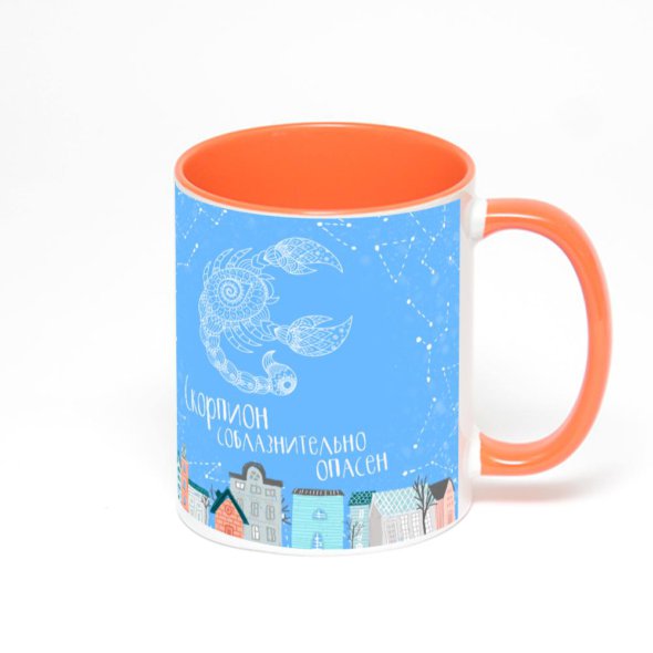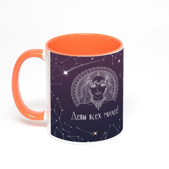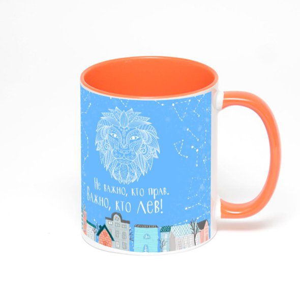Керамическая кружка окрашенная оранжевым внутри с оранжевой ручкой с нанесением изображения. Кружка с вашим изображением – это уникальный и качественный подарок. Создать её вы можете прямо сейчас в редакторе, добавляя фотографии, стикеры и надписи.