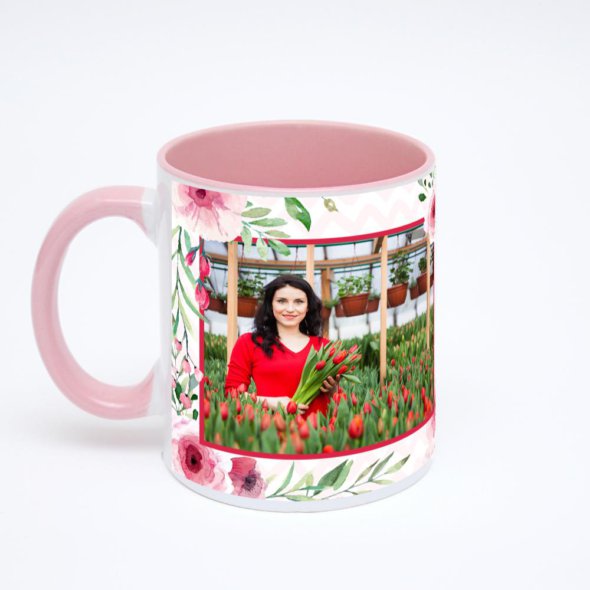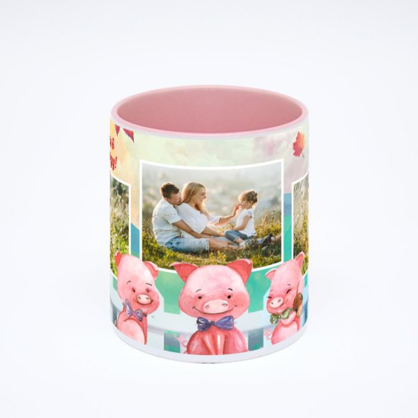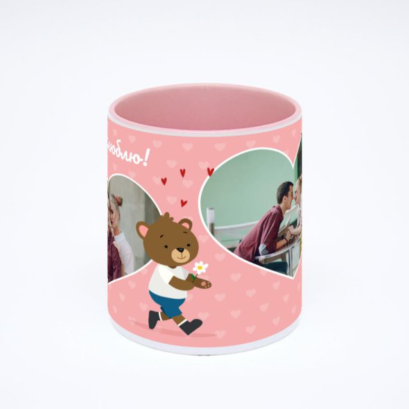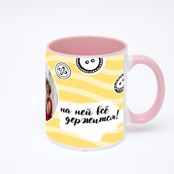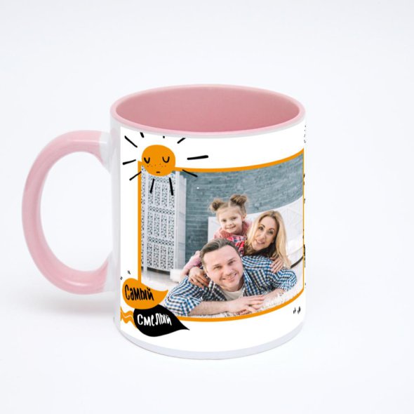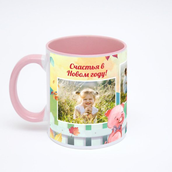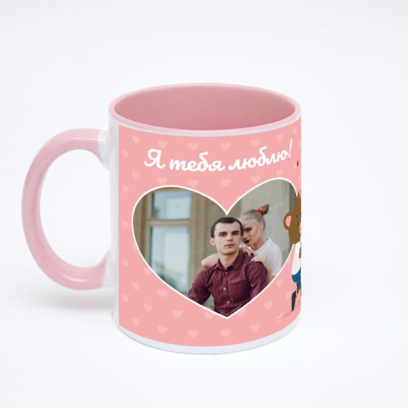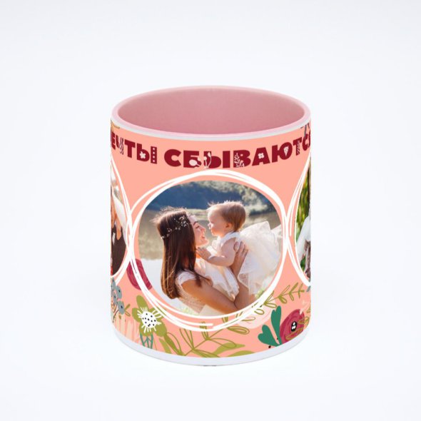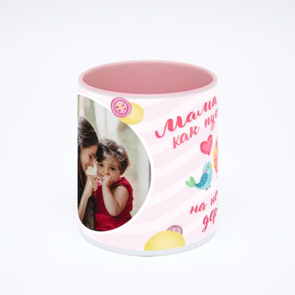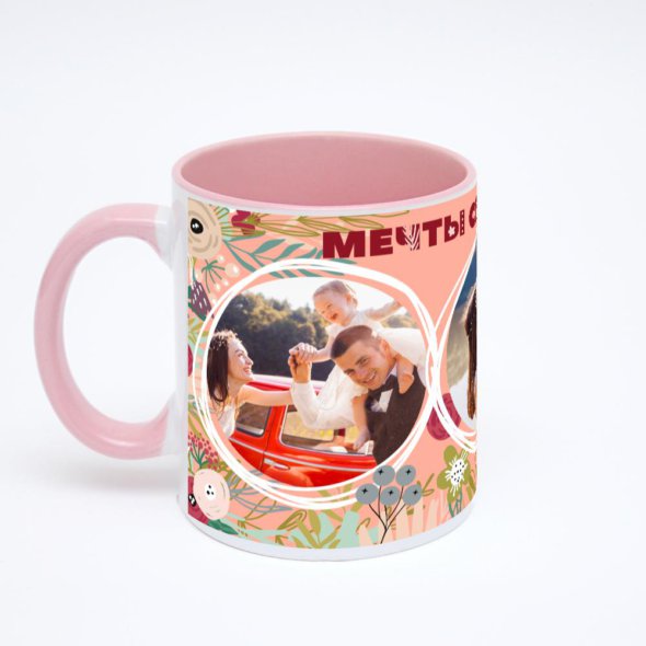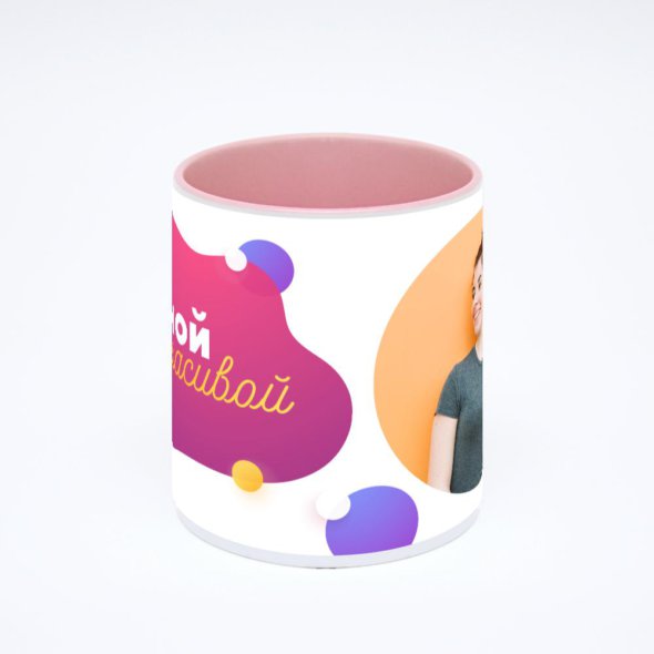 Керамическая кружка окрашенная розовым внутри с розовой ручкой с нанесением изображения. Кружка с вашим изображением – это уникальный и качественный подарок. Создать её вы можете прямо сейчас в редакторе, добавляя фотографии, стикеры и надписи.