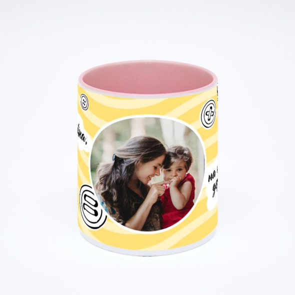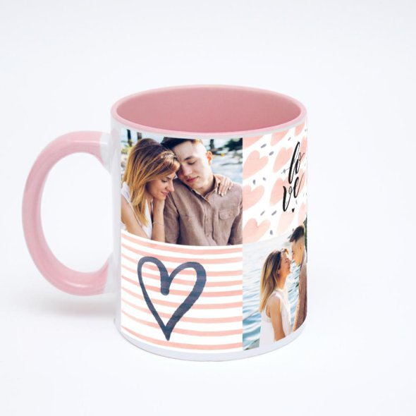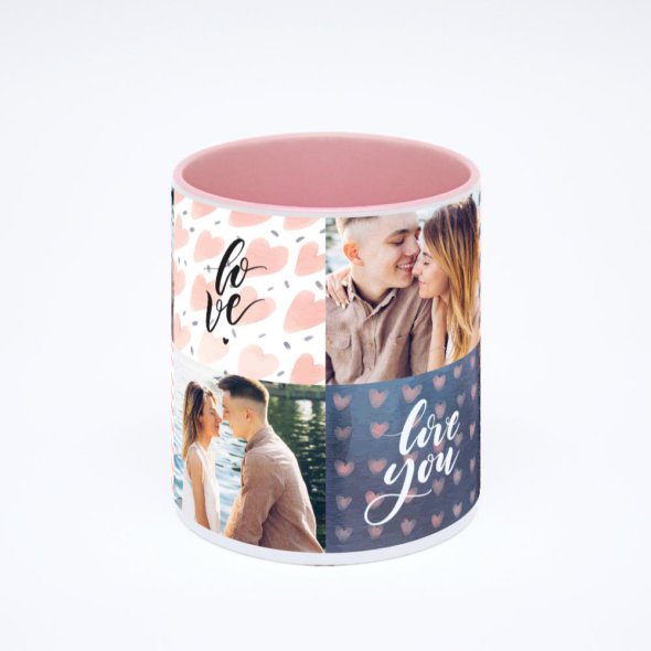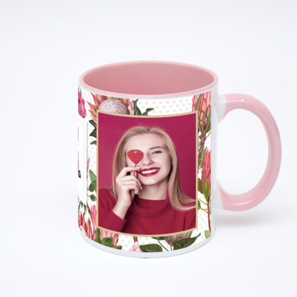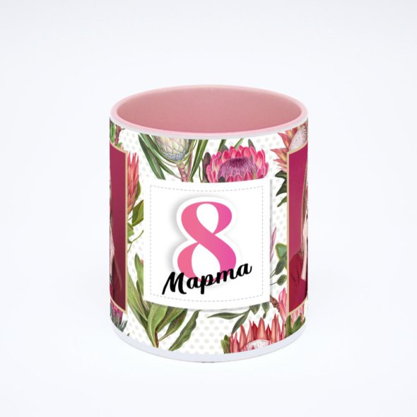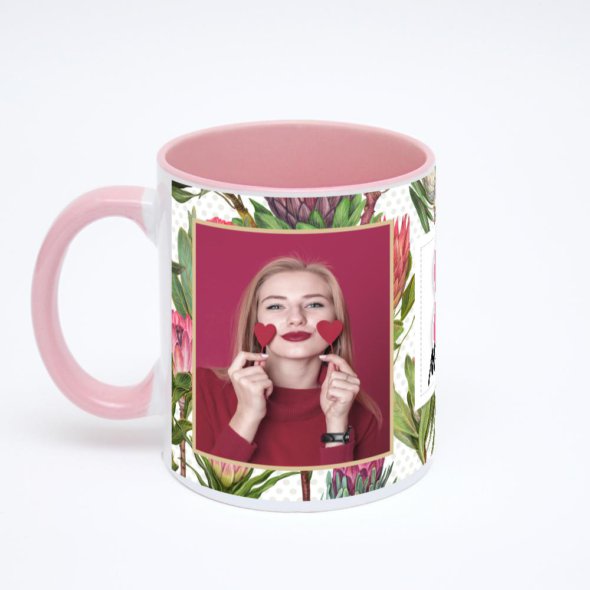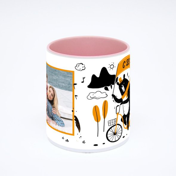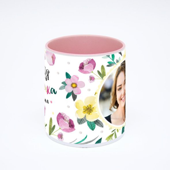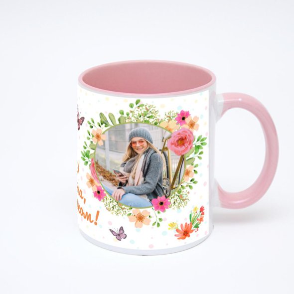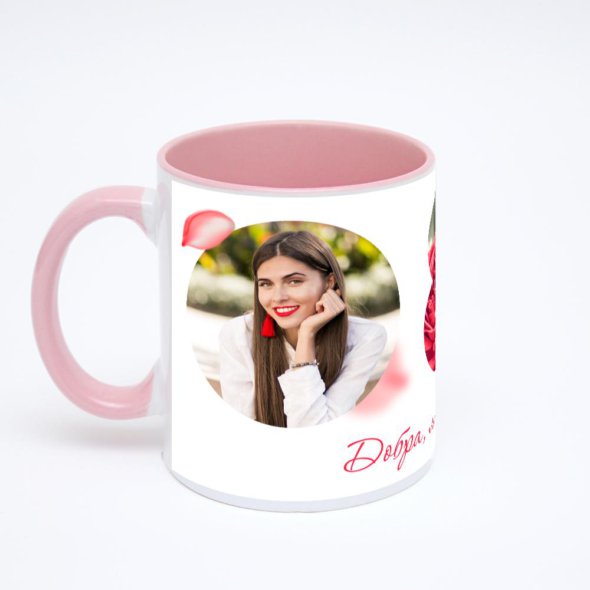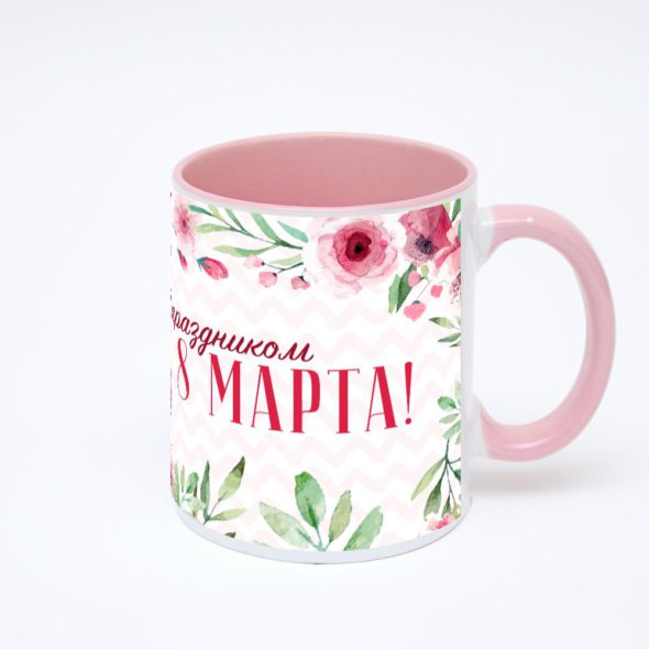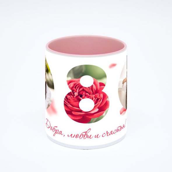Керамическая кружка окрашенная розовым внутри с розовой ручкой с нанесением изображения. Кружка с вашим изображением – это уникальный и качественный подарок. Создать её вы можете прямо сейчас в редакторе, добавляя фотографии, стикеры и надписи.