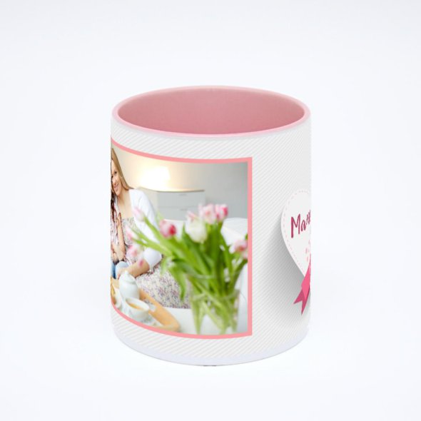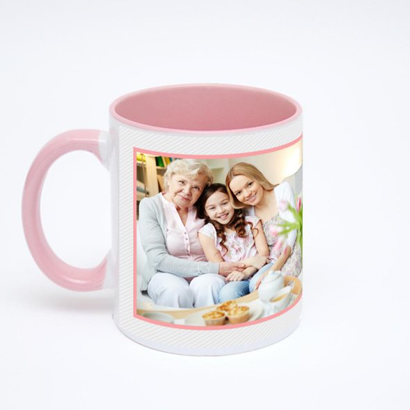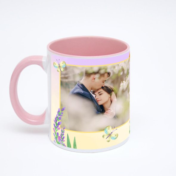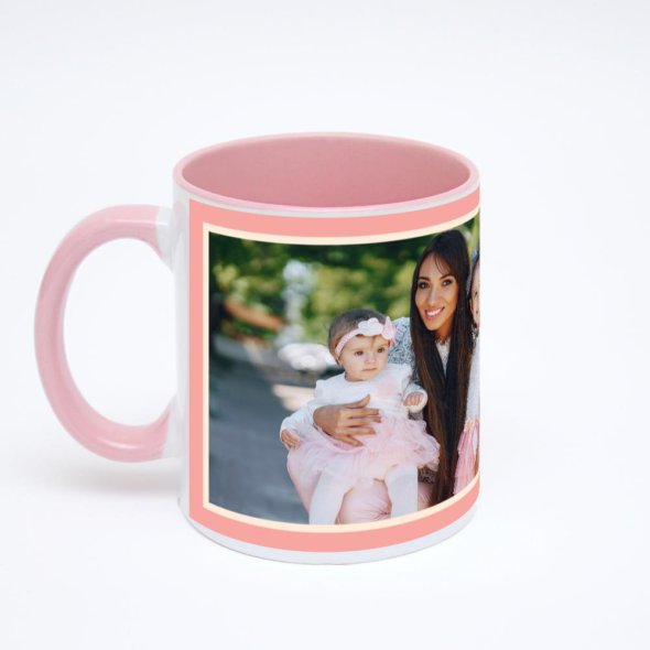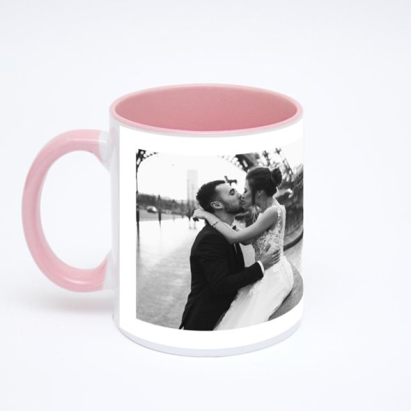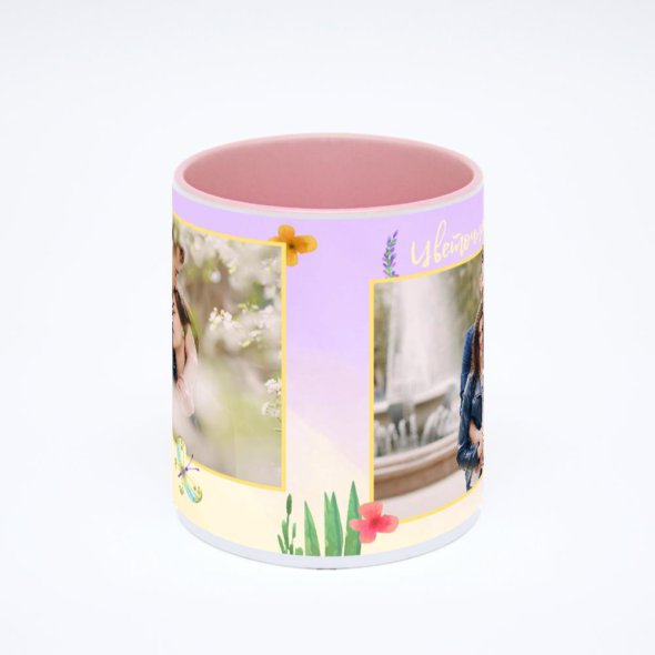 Керамическая кружка окрашенная розовым внутри с розовой ручкой с нанесением изображения. Кружка с вашим изображением – это уникальный и качественный подарок. Создать её вы можете прямо сейчас в редакторе, добавляя фотографии, стикеры и надписи.