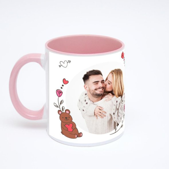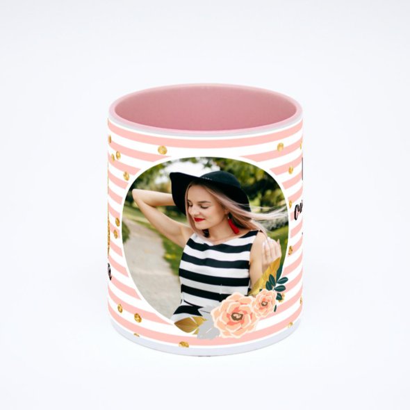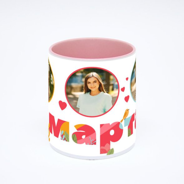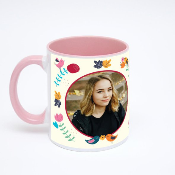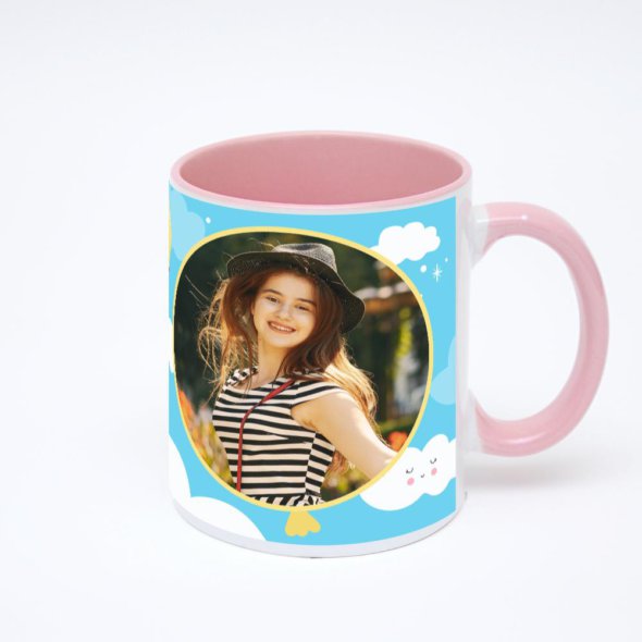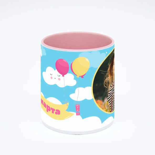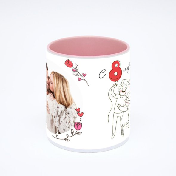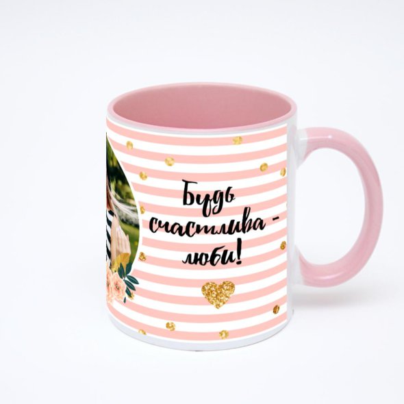 Керамическая кружка окрашенная розовым внутри с розовой ручкой с нанесением изображения. Кружка с вашим изображением – это уникальный и качественный подарок. Создать её вы можете прямо сейчас в редакторе, добавляя фотографии, стикеры и надписи.