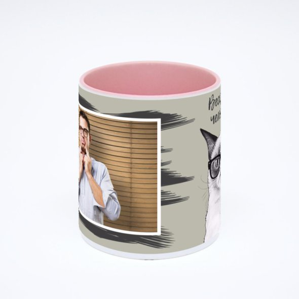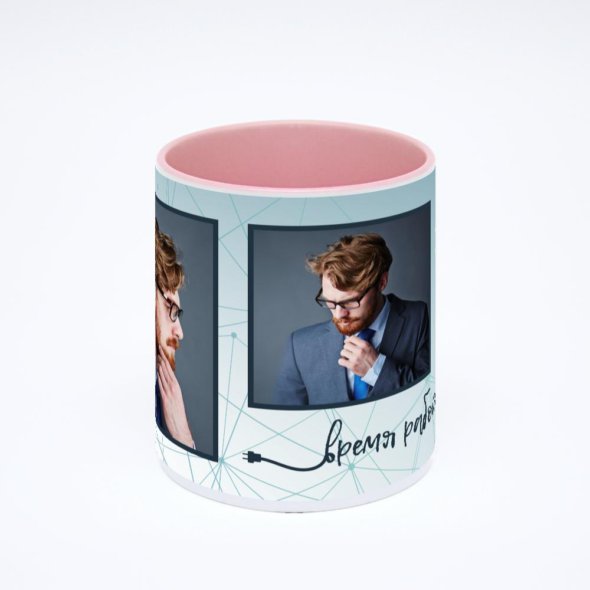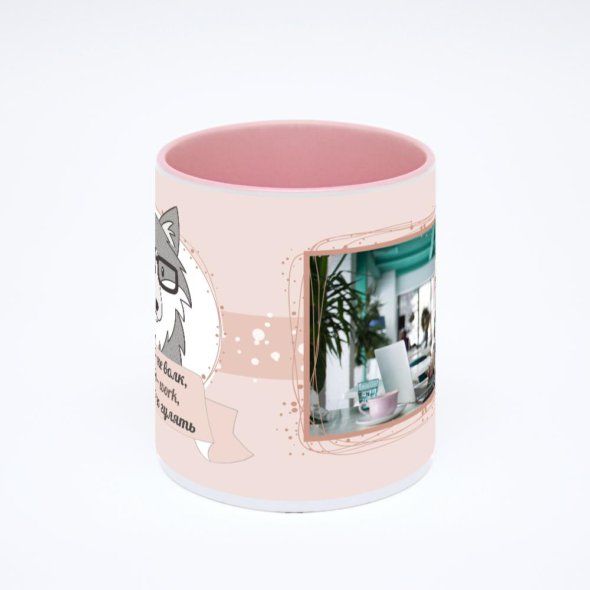 Керамическая кружка окрашенная розовым внутри с розовой ручкой с нанесением изображения. Кружка с вашим изображением – это уникальный и качественный подарок. Создать её вы можете прямо сейчас в редакторе, добавляя фотографии, стикеры и надписи.