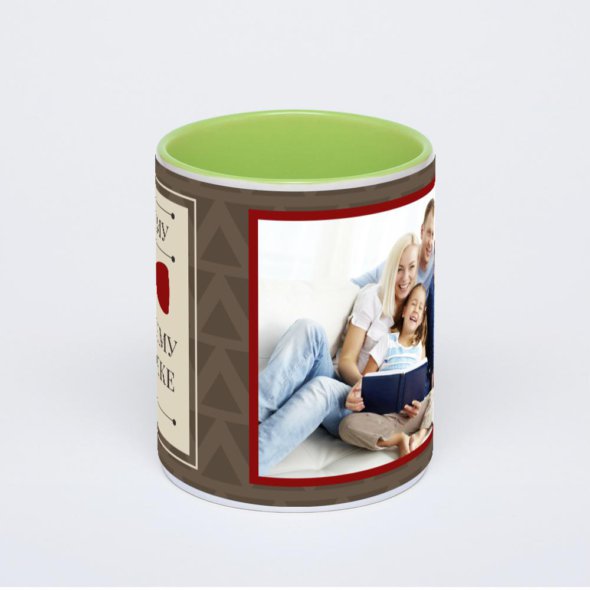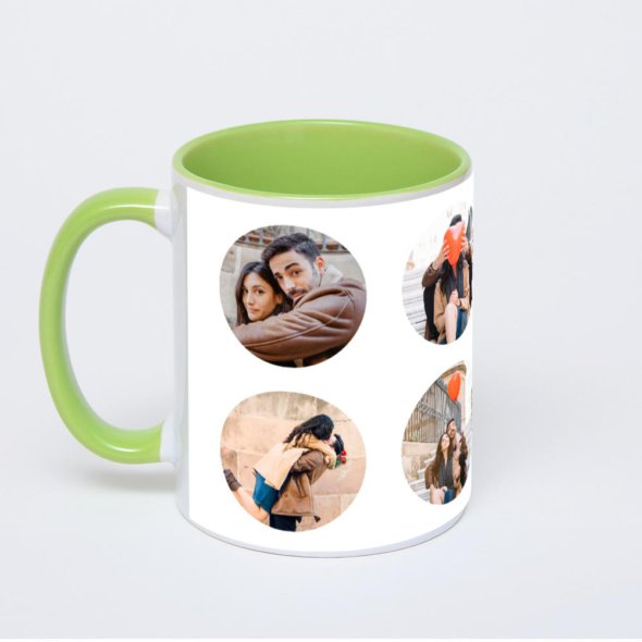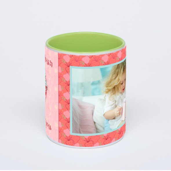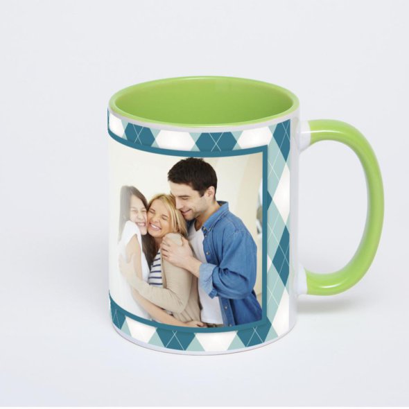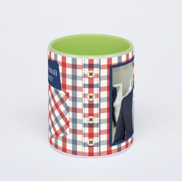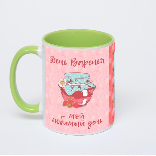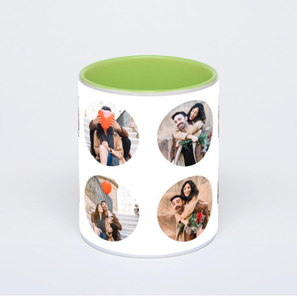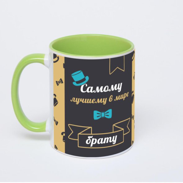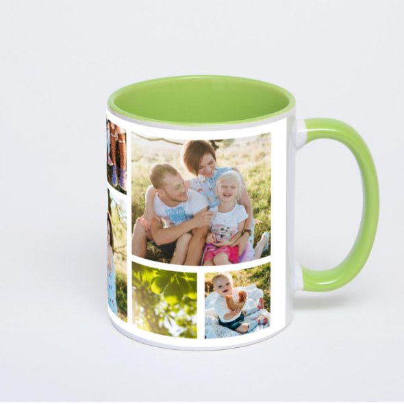 Керамическая кружка окрашенная салатовым внутри с салатовой ручкой с нанесением изображения. Кружка с вашим изображением – это уникальный и качественный подарок. Создать её вы можете прямо сейчас в редакторе, добавляя фотографии, стикеры и надписи.