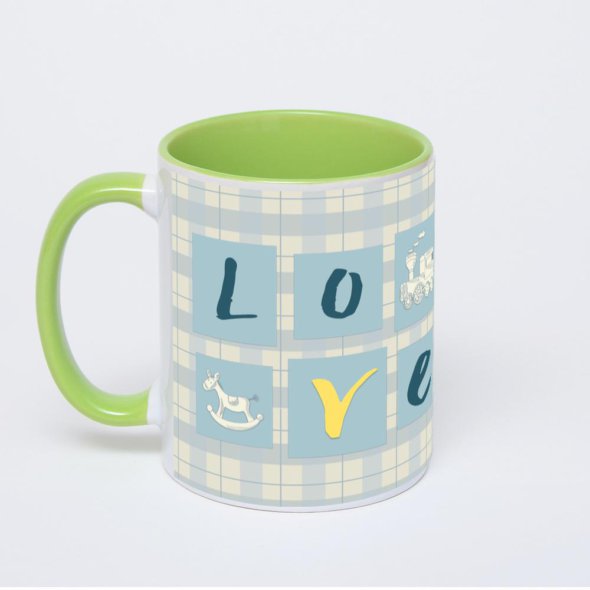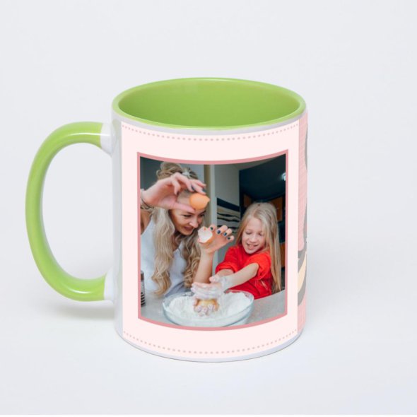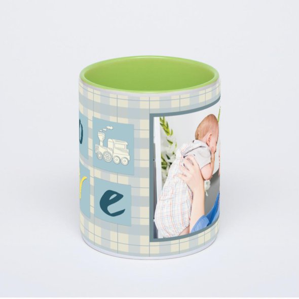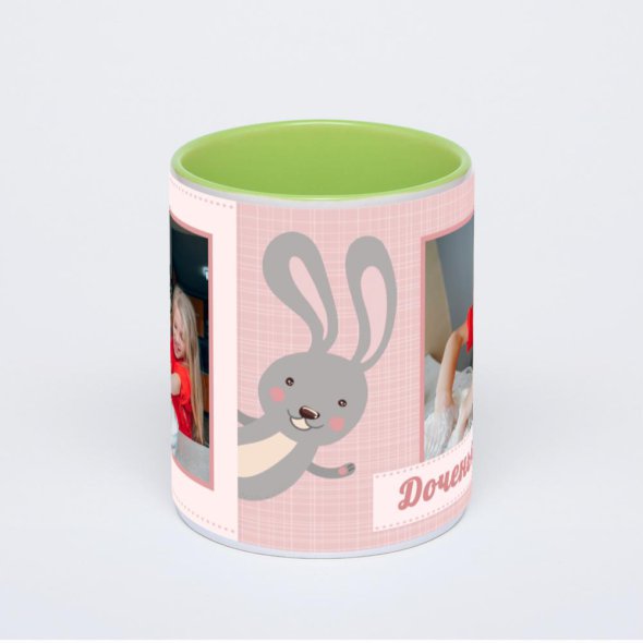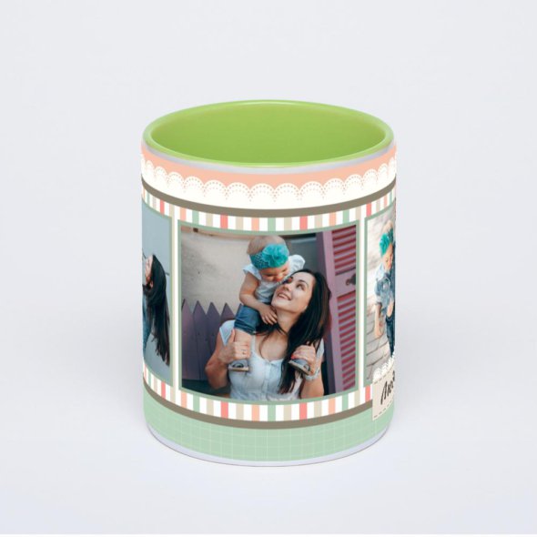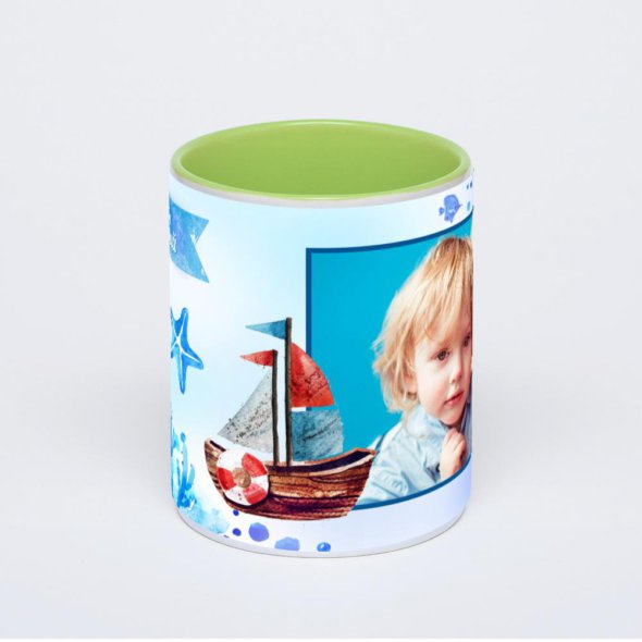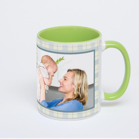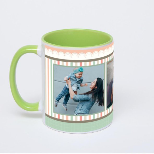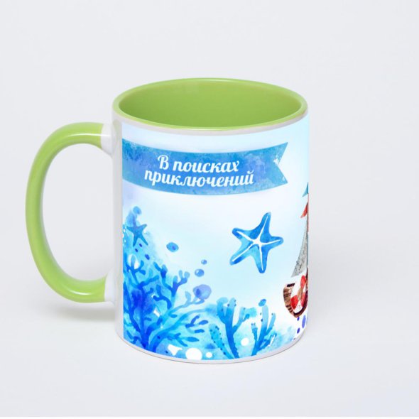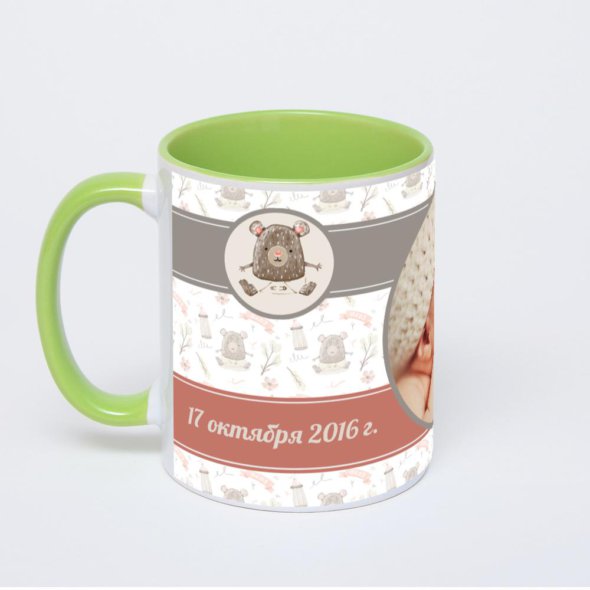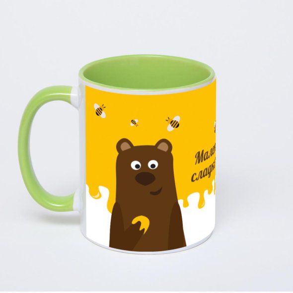 Керамическая кружка окрашенная салатовым внутри с салатовой ручкой с нанесением изображения. Кружка с вашим изображением – это уникальный и качественный подарок. Создать её вы можете прямо сейчас в редакторе, добавляя фотографии, стикеры и надписи.