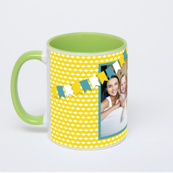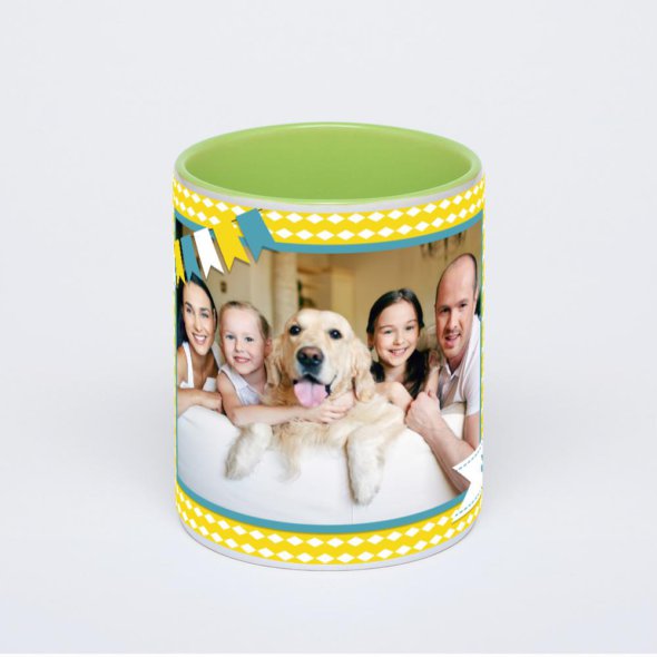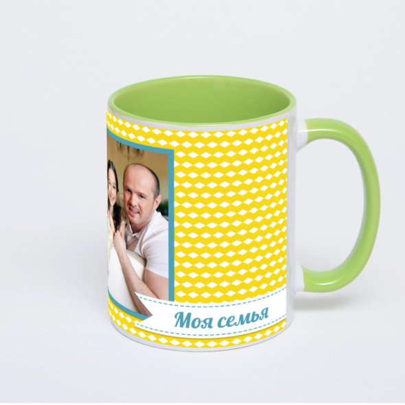 Керамическая кружка окрашенная салатовым внутри с салатовой ручкой с нанесением изображения. Кружка с вашим изображением – это уникальный и качественный подарок. Создать её вы можете прямо сейчас в редакторе, добавляя фотографии, стикеры и надписи.