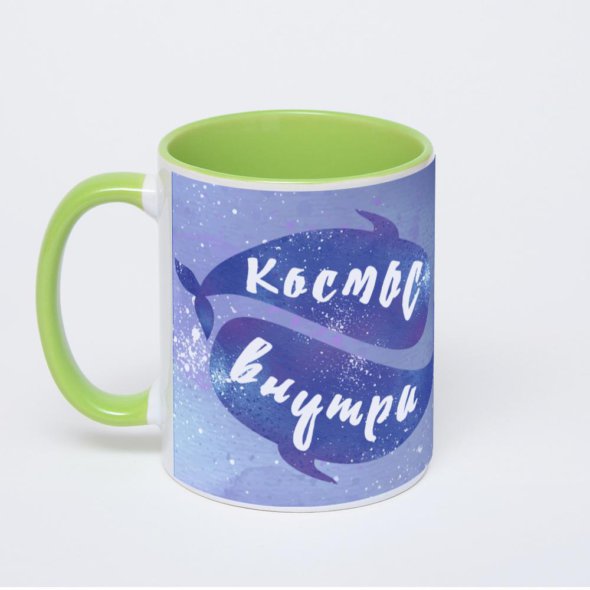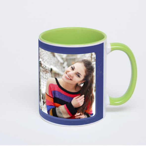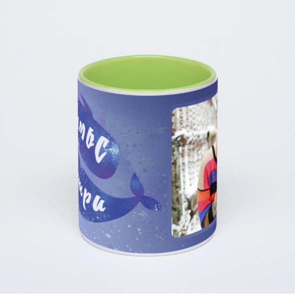Керамическая кружка окрашенная салатовым внутри с салатовой ручкой с нанесением изображения. Кружка с вашим изображением – это уникальный и качественный подарок. Создать её вы можете прямо сейчас в редакторе, добавляя фотографии, стикеры и надписи.
