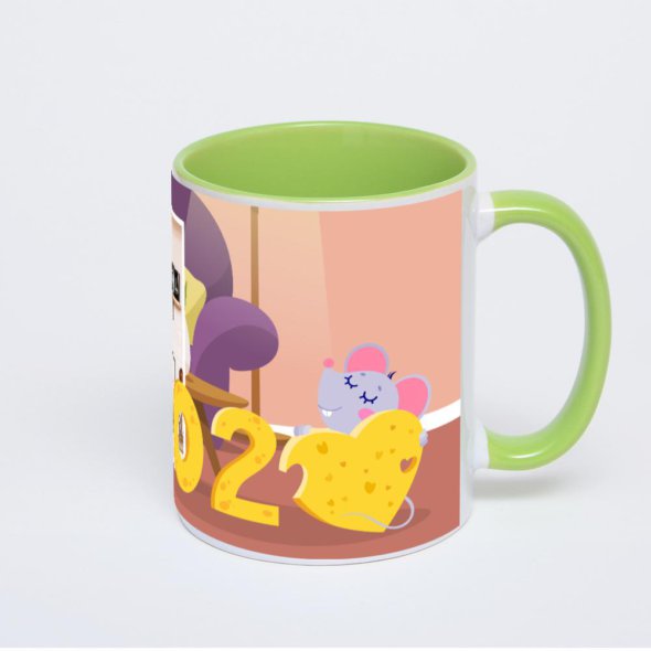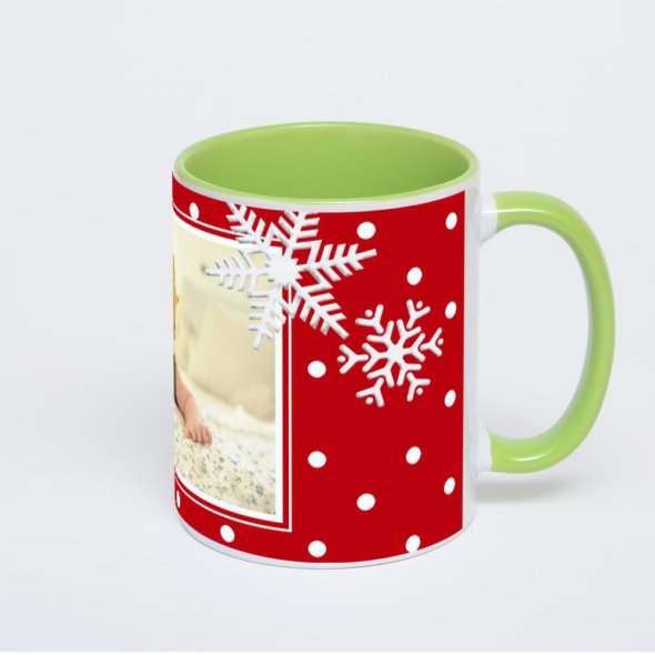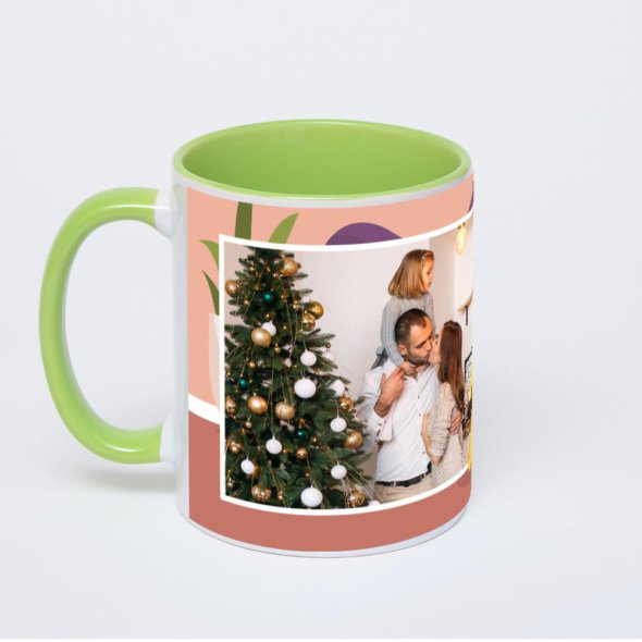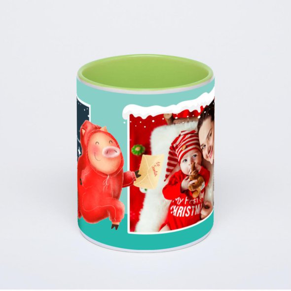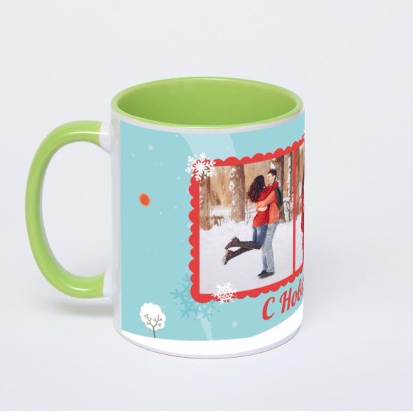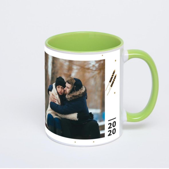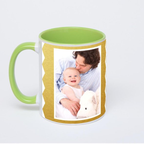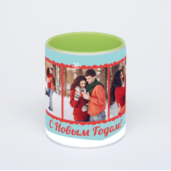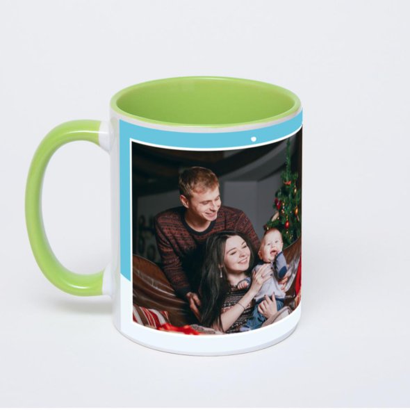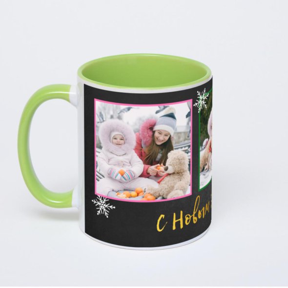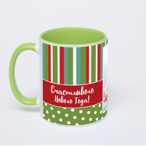 Керамическая кружка окрашенная салатовым внутри с салатовой ручкой с нанесением изображения. Кружка с вашим изображением – это уникальный и качественный подарок. Создать её вы можете прямо сейчас в редакторе, добавляя фотографии, стикеры и надписи.