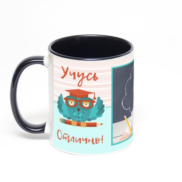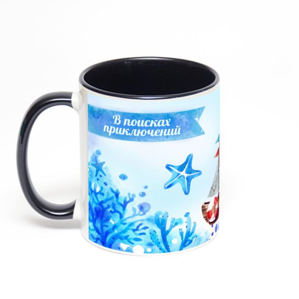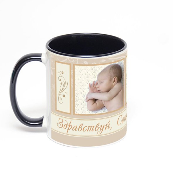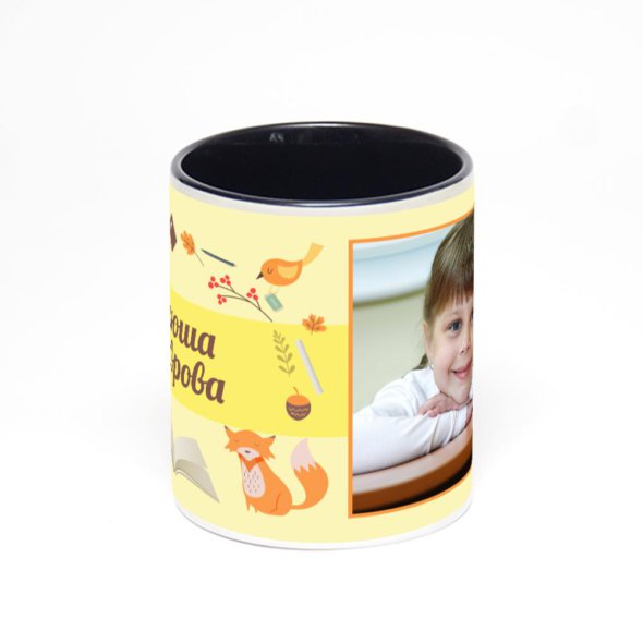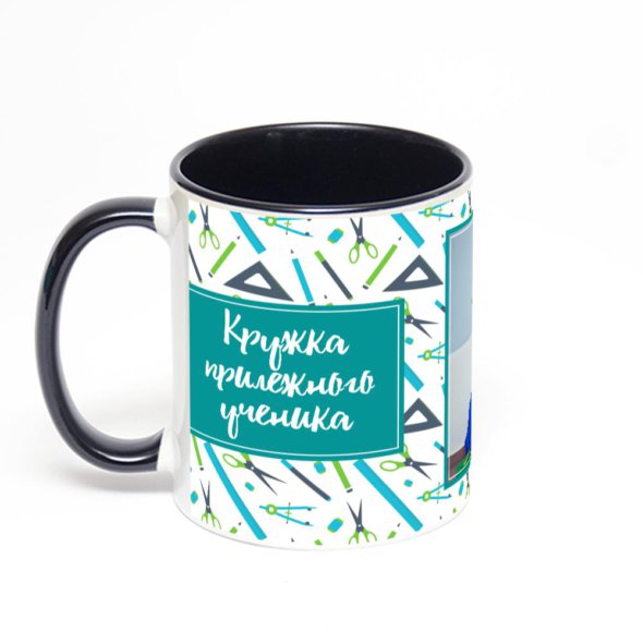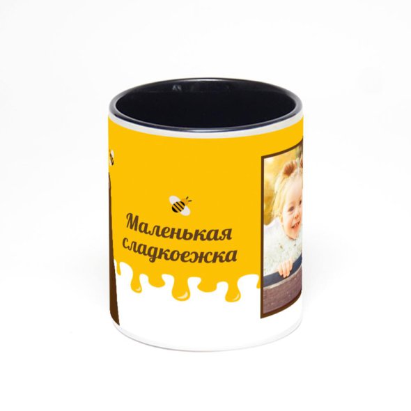 Керамическая кружка окрашенная чёрным внутри с чёрной ручкой с нанесением изображения. Кружка с вашим изображением – это уникальный и качественный подарок. Создать её вы можете прямо сейчас в редакторе, добавляя фотографии, стикеры и надписи.