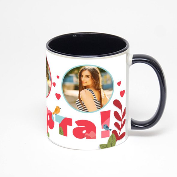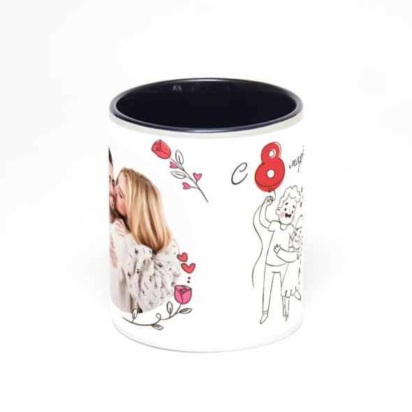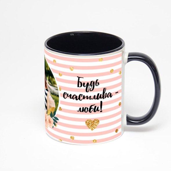 Керамическая кружка окрашенная чёрным внутри с чёрной ручкой с нанесением изображения. Кружка с вашим изображением – это уникальный и качественный подарок. Создать её вы можете прямо сейчас в редакторе, добавляя фотографии, стикеры и надписи.