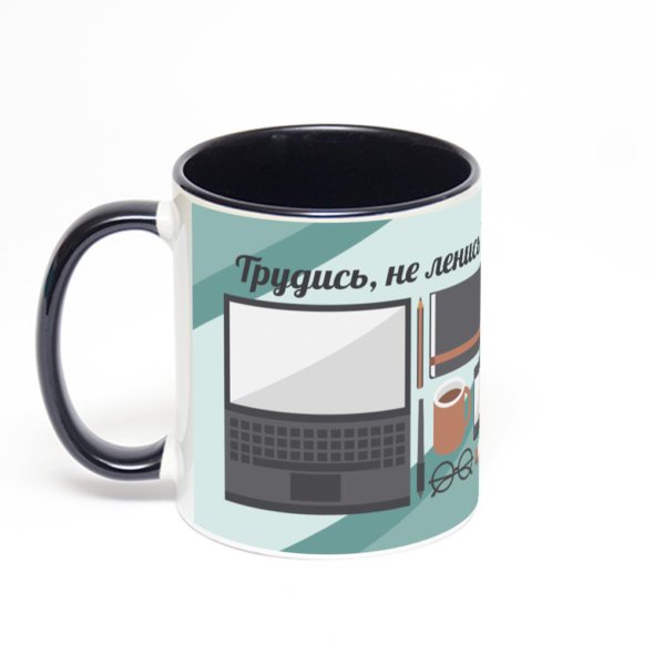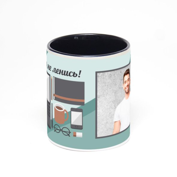 Керамическая кружка окрашенная чёрным внутри с чёрной ручкой с нанесением изображения. Кружка с вашим изображением – это уникальный и качественный подарок. Создать её вы можете прямо сейчас в редакторе, добавляя фотографии, стикеры и надписи.