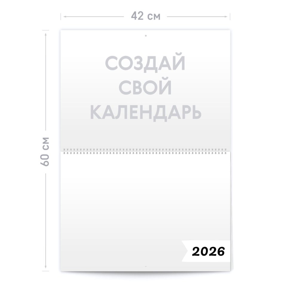 Настенный перекидной календарь состоит из 13 листов – обложка и 12 месяцев. Листы размером 42×30см печатаются на плотной мелованной бумаге, собираются на белой металлической пружине. Общий размер календаря в раскрытом виде 42×60см (формат А2). Отверстия для подвешивания присутствуют на каждом листе. Крупные, хорошо различимые цифры будут радовать владельца календаря каждый день!