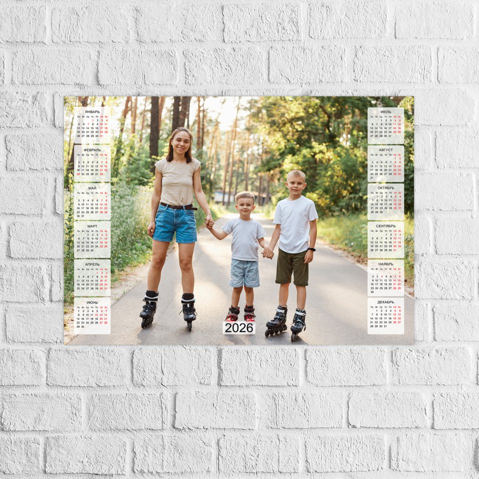 Печать календаря-плаката формата А3 горизонтальный на фотобумаге. Календарный постер формата А3 со своими фотографиями можно создать в нашем редакторе за считанные минуты.