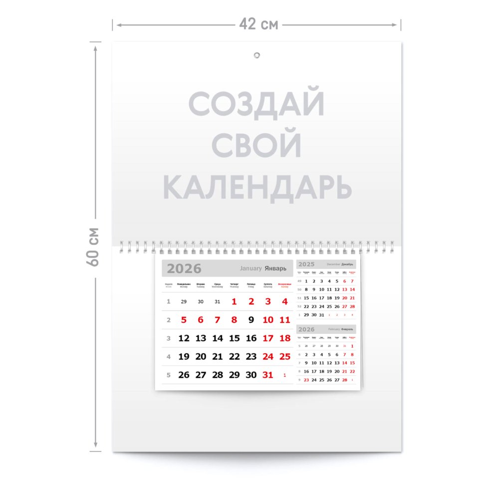 Квартальный календарь с двумя постерами формата А3 и календарным блоком компакт 3-в-1. Постер с люверсом. 12 листов в блоке c крупным текущим, уменьшенными прошлым и будущим месяцами. С этим квартальным календарём вы легко спланируете любые дела и будете точно знать о наступлении выходных и праздничных дней.