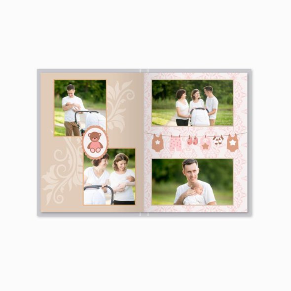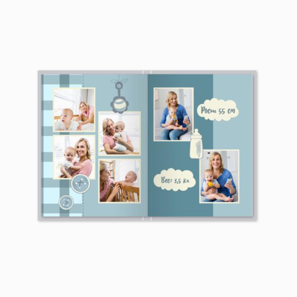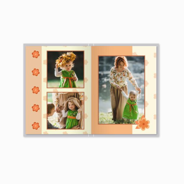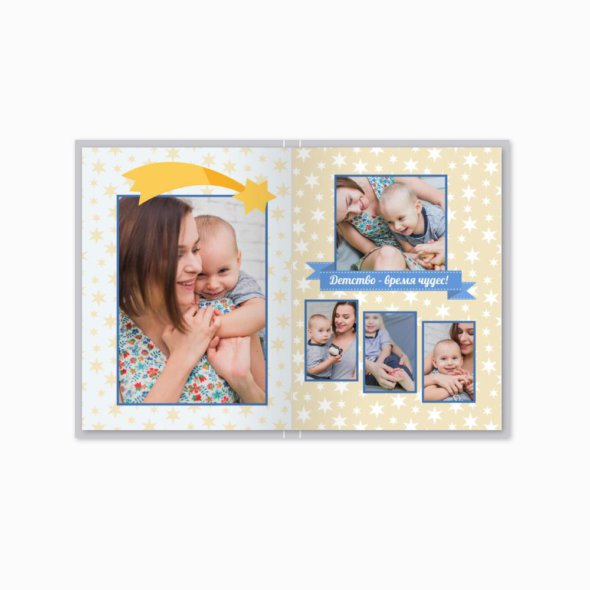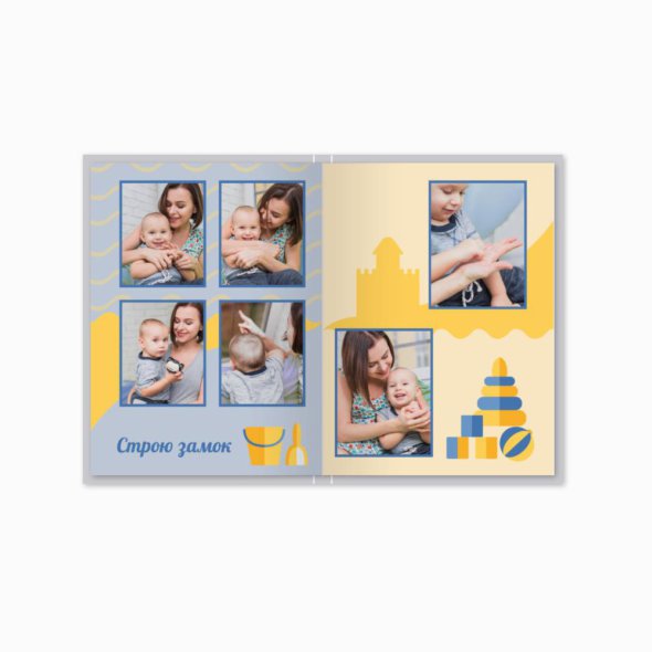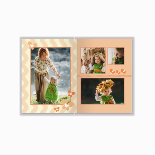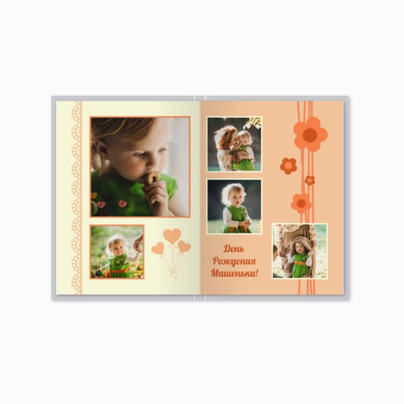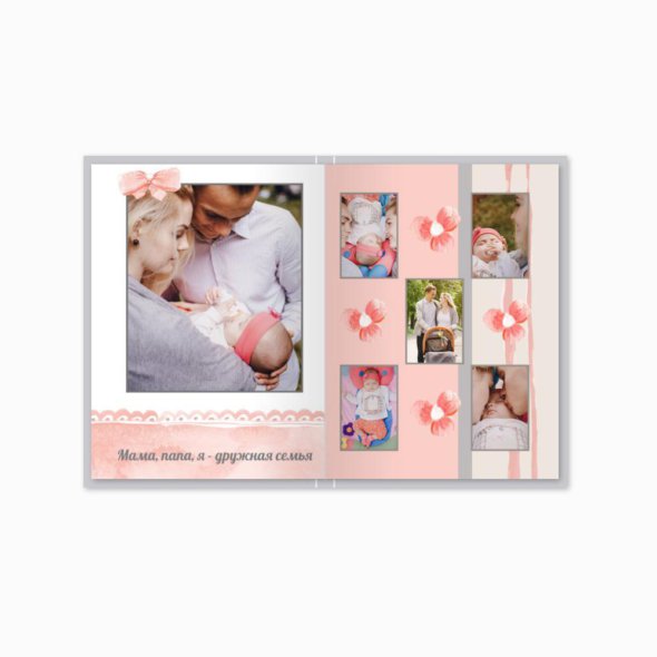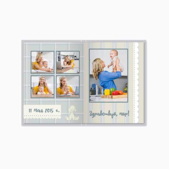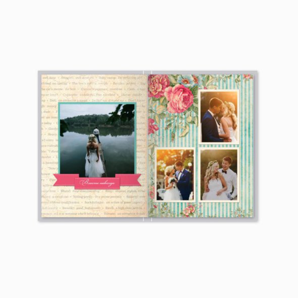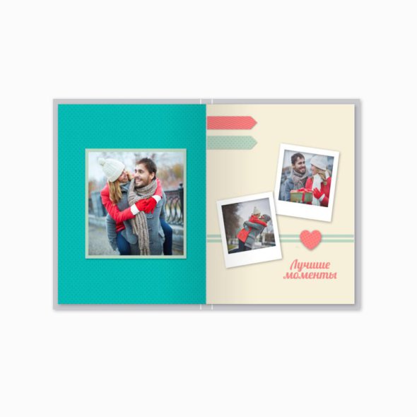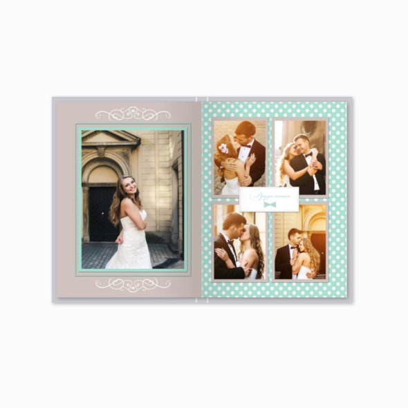 Минибук размером 10х15 см. Полное книжное раскрытие разворота. 9 разворотов позволяют загрузить до 50 фотографий. Максимально возможное качество печати на профессиональной фотобумаге. При заказе от 5 штук с одним макетом предоставляется дополнительная скидка.