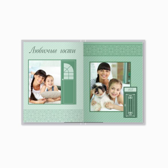 Полиграфическая брошюра размером 15х21 см в твёрдой глянцевой обложке со страницами на мелованной бумаге. 24 страницы по умолчанию, с возможностью добавить до 90 страниц по цене 70 рублей за страницу.