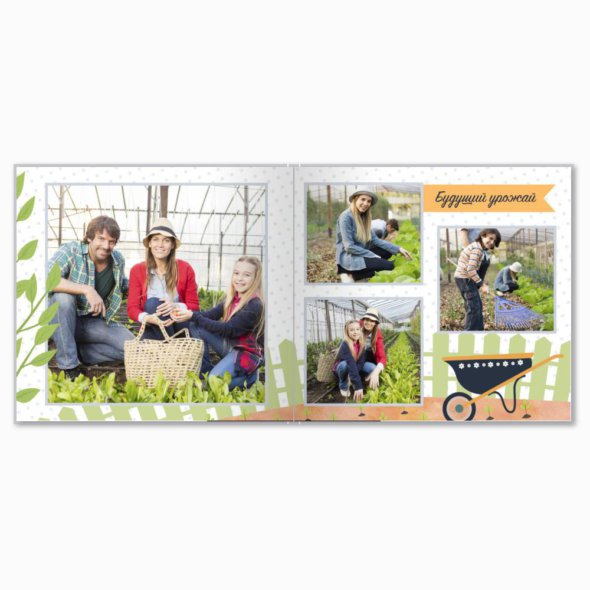 Полиграфическая брошюра размером 21х21 см в твёрдой глянцевой обложке со страницами на мелованной бумаге. 24 страницы по умолчанию, с возможностью добавить до 90 страниц по цене 110 рублей за страницу.