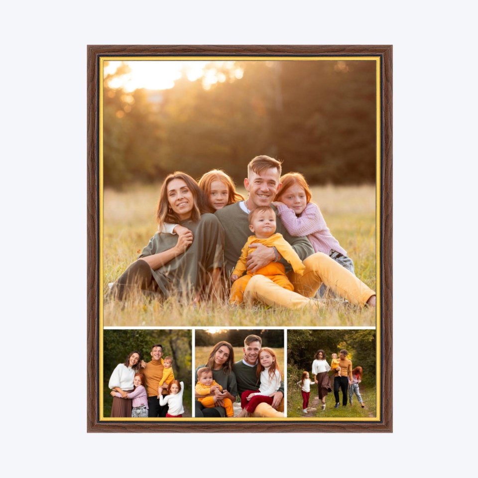Вертикальный фотоколлаж в коричневой рамке 30х40 рассчитан на загрузку фотографий. Печать коллажа производится на профессиональной фотобумаге. Срок изготовления – 2 часа. Изготовление коллажей в рамках осуществляется ежедневно, включая праздники и выходные. Услуга печати фотоколлажа в рамке представлена эксклюзивно на сайте Папарацци, заказать в других местах не получится.