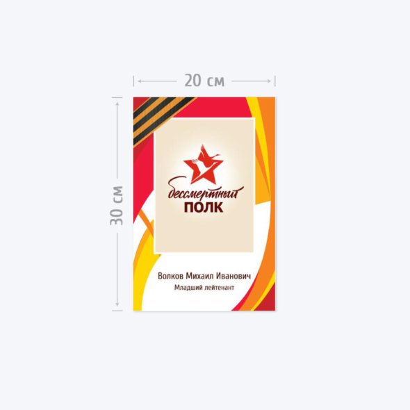 Печать наклейки на стекло автомобиля формата А4 размером 20х30 см «Бессмертный полк». Изображение устойчиво к погодным условиям благодаря ламинации. Для заказа загрузите фотографию и замените текст на свой. Ваш заказ поступит в печать только после согласования макета с вами по Whatsapp или электронной почте, при необходимости вы сможете внести правки. Срок изготовления – 2 рабочих дня.