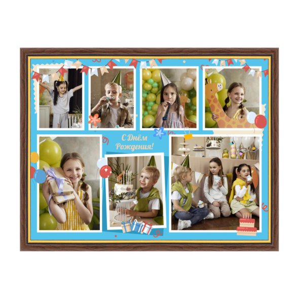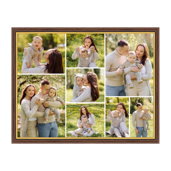 Печать горизонтального коллажа в коричневой рамке 40х30 с загрузкой фотографий