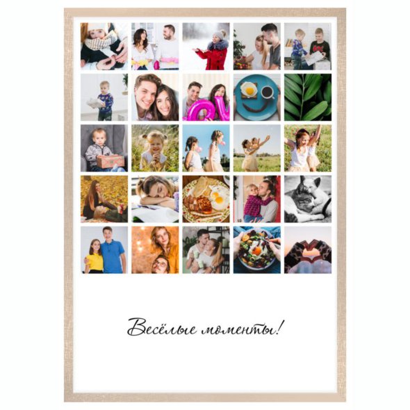 Коллаж из 25 фотографий с возможностью смены фона и надписи