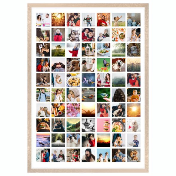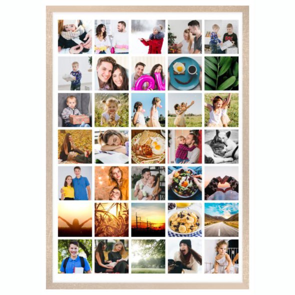 Печать вертикального коллажа 62х87 в бежево-золотистой рамке