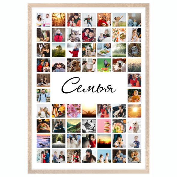 Коллаж из 56 фотографий с возможностью смены фона и надписи