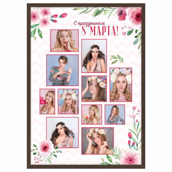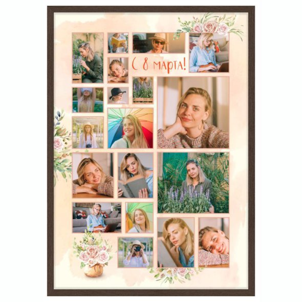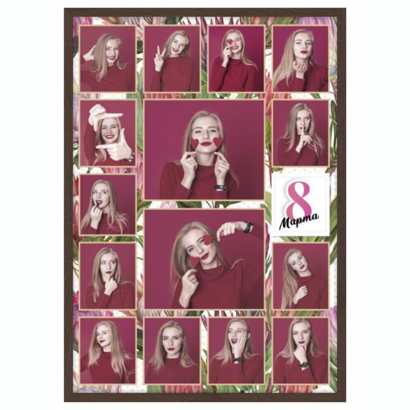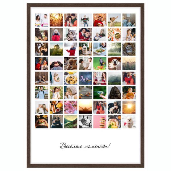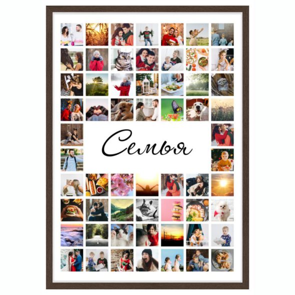 Печать вертикального коллажа 62х87 в рамке цвета венге