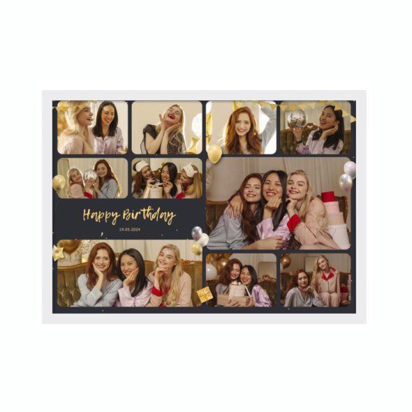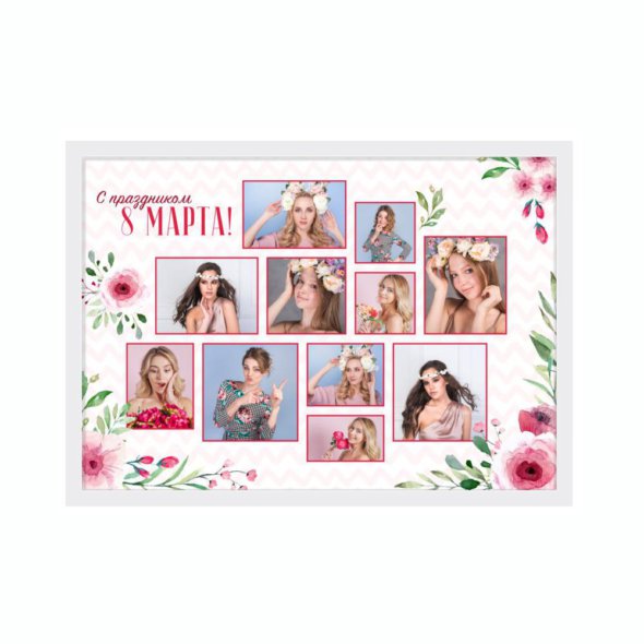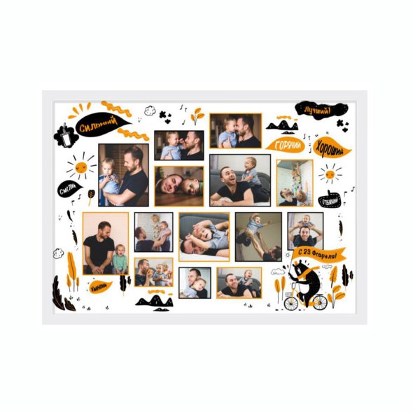 Печать горизонтального коллажа 60х42 см в белой рамке позволяет разместить сразу много фотографий в единой стильной рамке. Загрузите файлы, добавьте ваши надписи-поздравления и украсьте коллаж запоминающимися стикерами! Срок изготовления – 1 рабочий день.