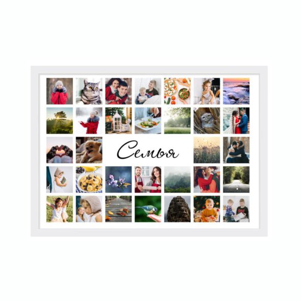 Коллаж из 32 фотографии с возможностью смены фона и надписи