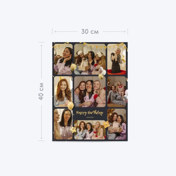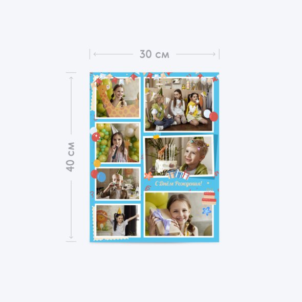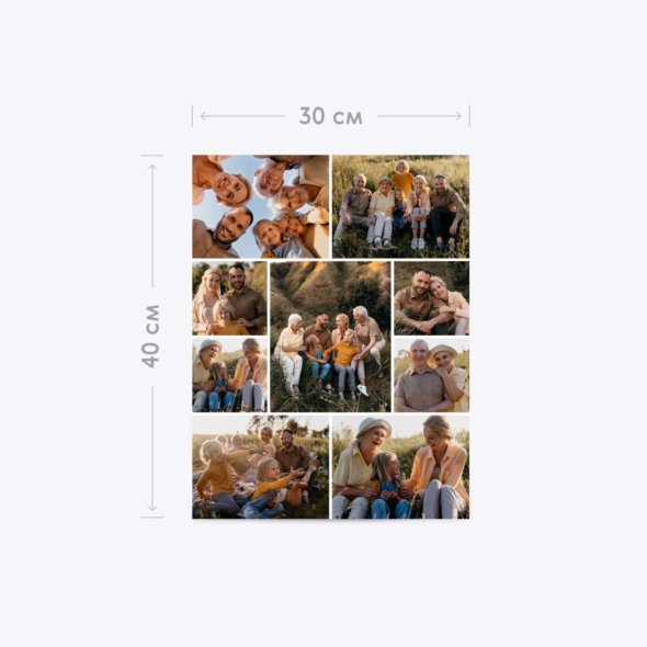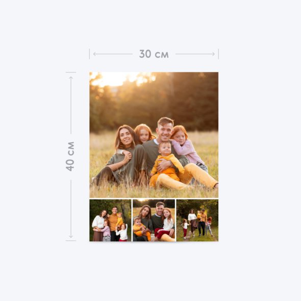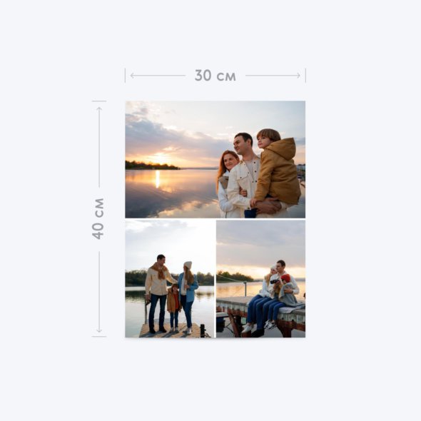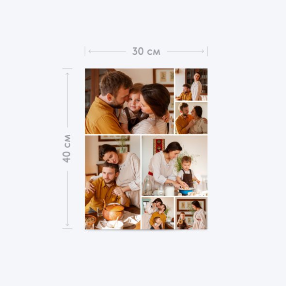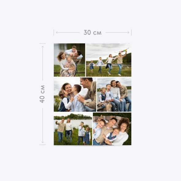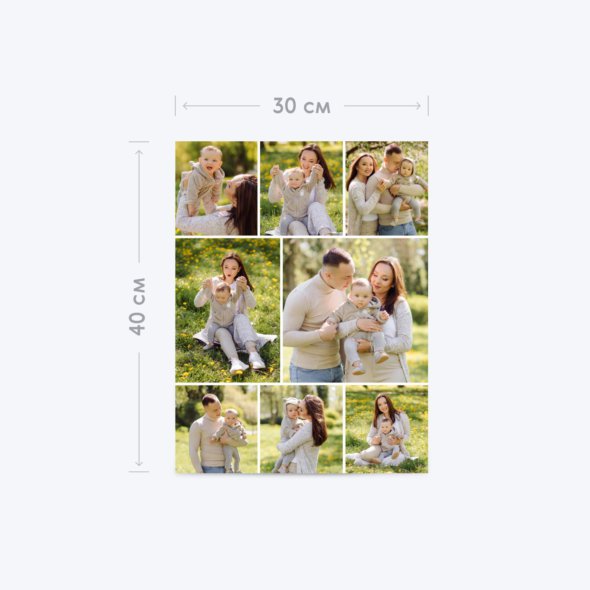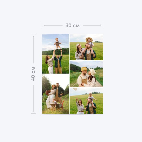 Печать вертикального фотоколлажа 30х40 с загрузкой фотографий и согласованием перед печатью