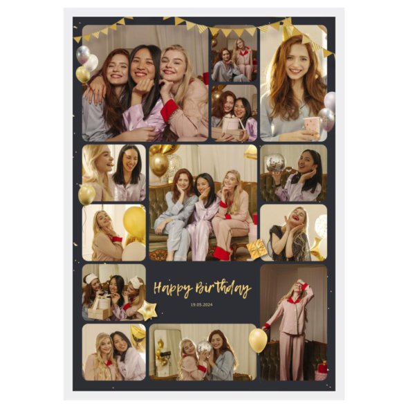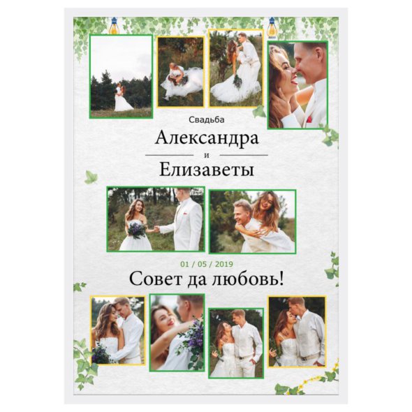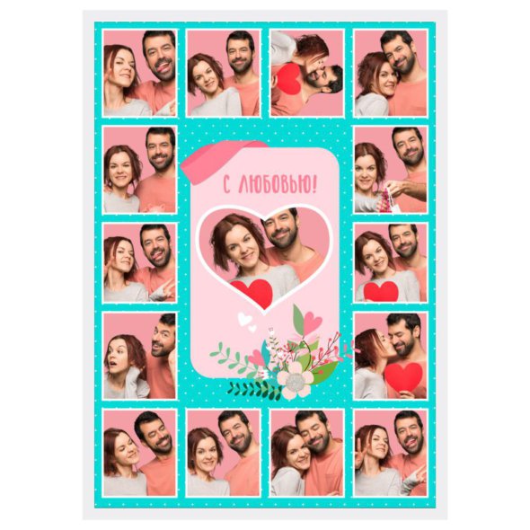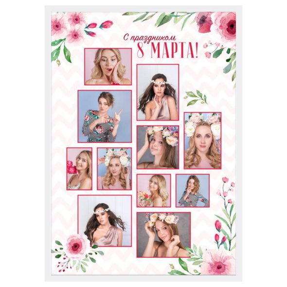 Печать вертикального коллажа 62х87 см в белой рамке позволяет разместить сразу много фотографий в единой стильной рамке. Загрузите файлы, добавьте ваши надписи-поздравления и украсьте коллаж запоминающимися стикерами! Срок изготовления – 1 рабочий день.