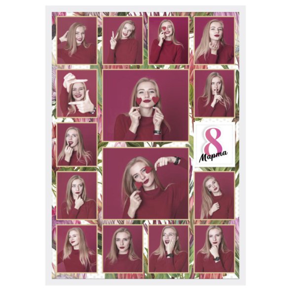 Коллаж из 25 фотографий с возможностью смены фона и надписи
