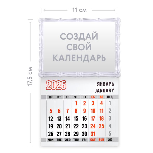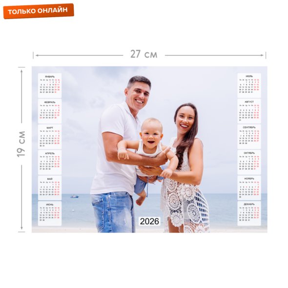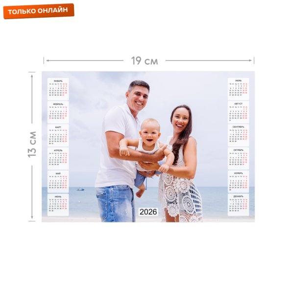 Печать среднего горизонтального магнитного календаря на 2026 год с загрузкой фотографии
