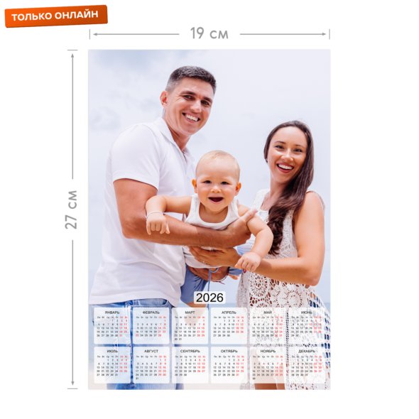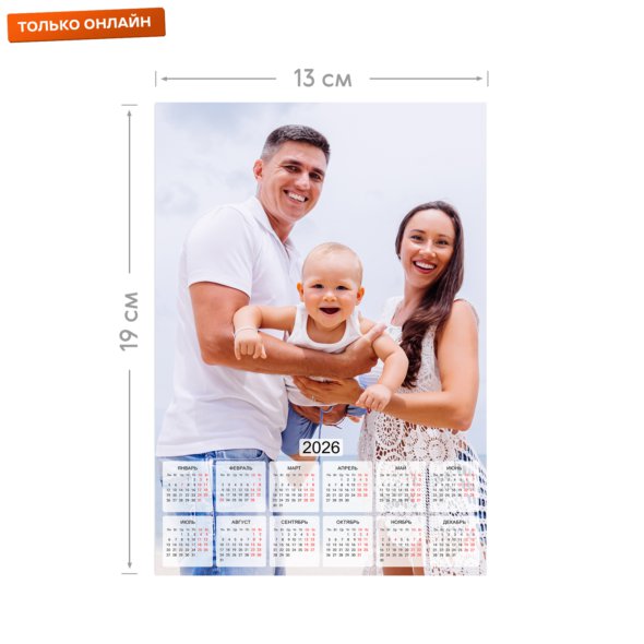 Печать большого вертикального магнитного календаря на 2026 год с загрузкой фотографии