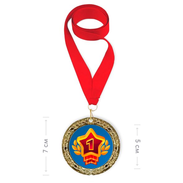Печать на наградной медали цвета «золото» с красной лентой