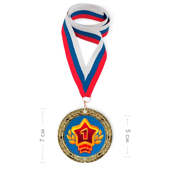 Печать на наградной медали цвета «золото» с лентой триколор