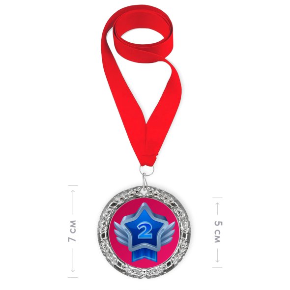 Печать на наградной медали цвета «серебро» с красной лентой