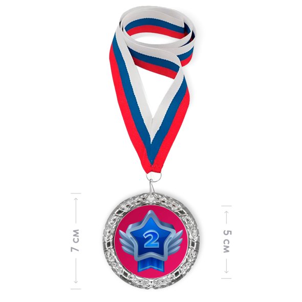 Печать на наградной медали цвета «серебро» с лентой триколор