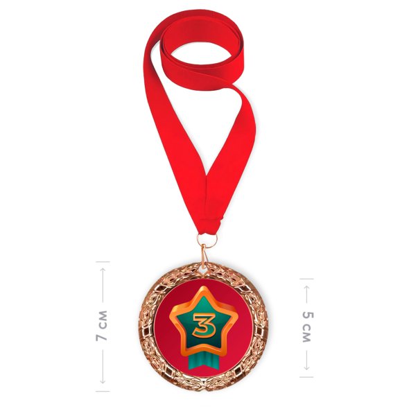 Печать на наградной медали цвета «бронза» с красной лентой