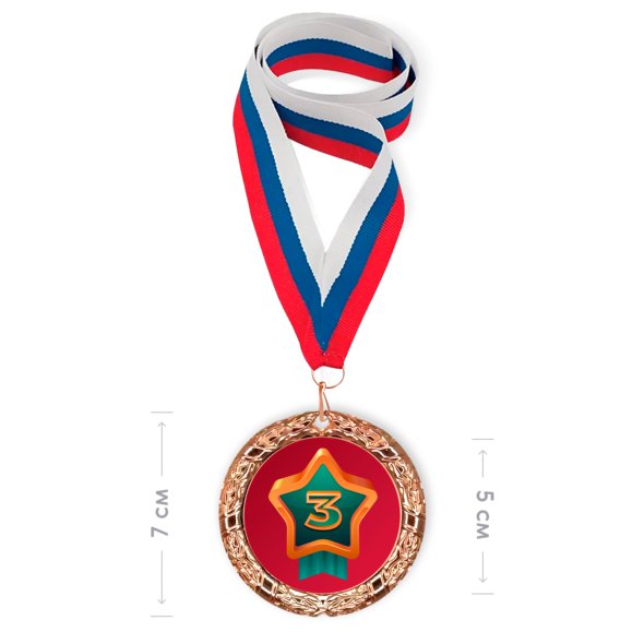 Печать на наградной медали цвета «бронза» с лентой триколор
